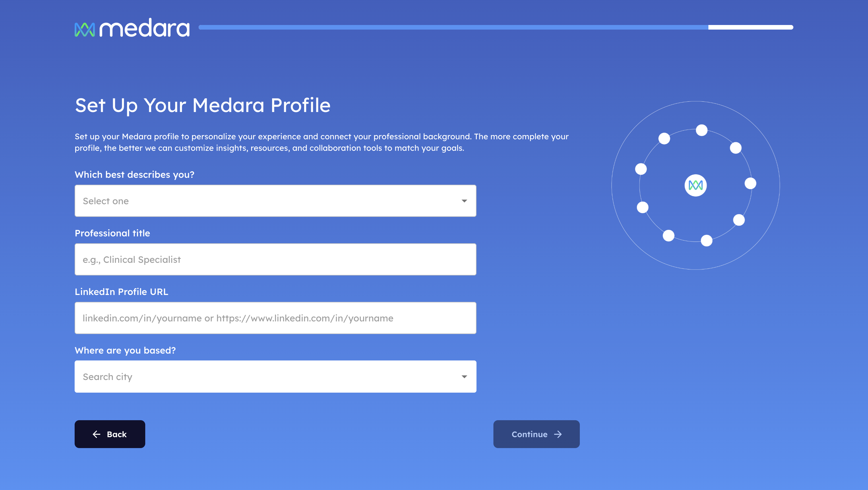 This selection helps Medara tailor discovery results, recommendations, and collaboration opportunities to your space.